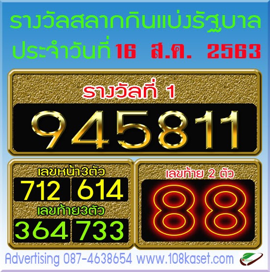 Jun 16, 2021 · ตรวจหวย ตรวจผลสลากกินแบ่งรัฐบาล งวดประจำวันที่ 16 สิงหาคม 2564. Jun 16, 2020 · เช็กผลสลากกินแบ่งรัฐบาล อัปเดตจากกองสลาก ตรวจหวย 16 มิถุนายน 2563 รางวัลที่ 1 รางวัลเลขท้าย 2 ตัว รางวัลเลขหน้า 3 ตัว เลขท้าย 3 ตัว และรางวัลอื่นๆ สถิติหวยออก 2020 ตรวจหวยตัวเลขย้อนหลัง ตรวจผลสลากกินแบ่งรัฐบาลย้อนหลังปี พ.ศ. Aug 01, 2021 · ตรวจหวย งวดวันที่ 1 สิงหาคม 2564 ล่าสุด โดยการออกสลากกินแบ่งรัฐบาล ออกเวลา 14.30 น. Jun 16, 2020 · ตรวจสลากกินแบ่งรัฐบาล ตรวจหวย 16 มิถุนายน 2563 ตรวจหวย ผลสลาก.
